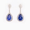 Oorringen in geel goud 18 karaat gezet met 50 diamanten in briljantslijp en twee topazen in fantasieslijp bovenop twee plaatjes parelmoer.