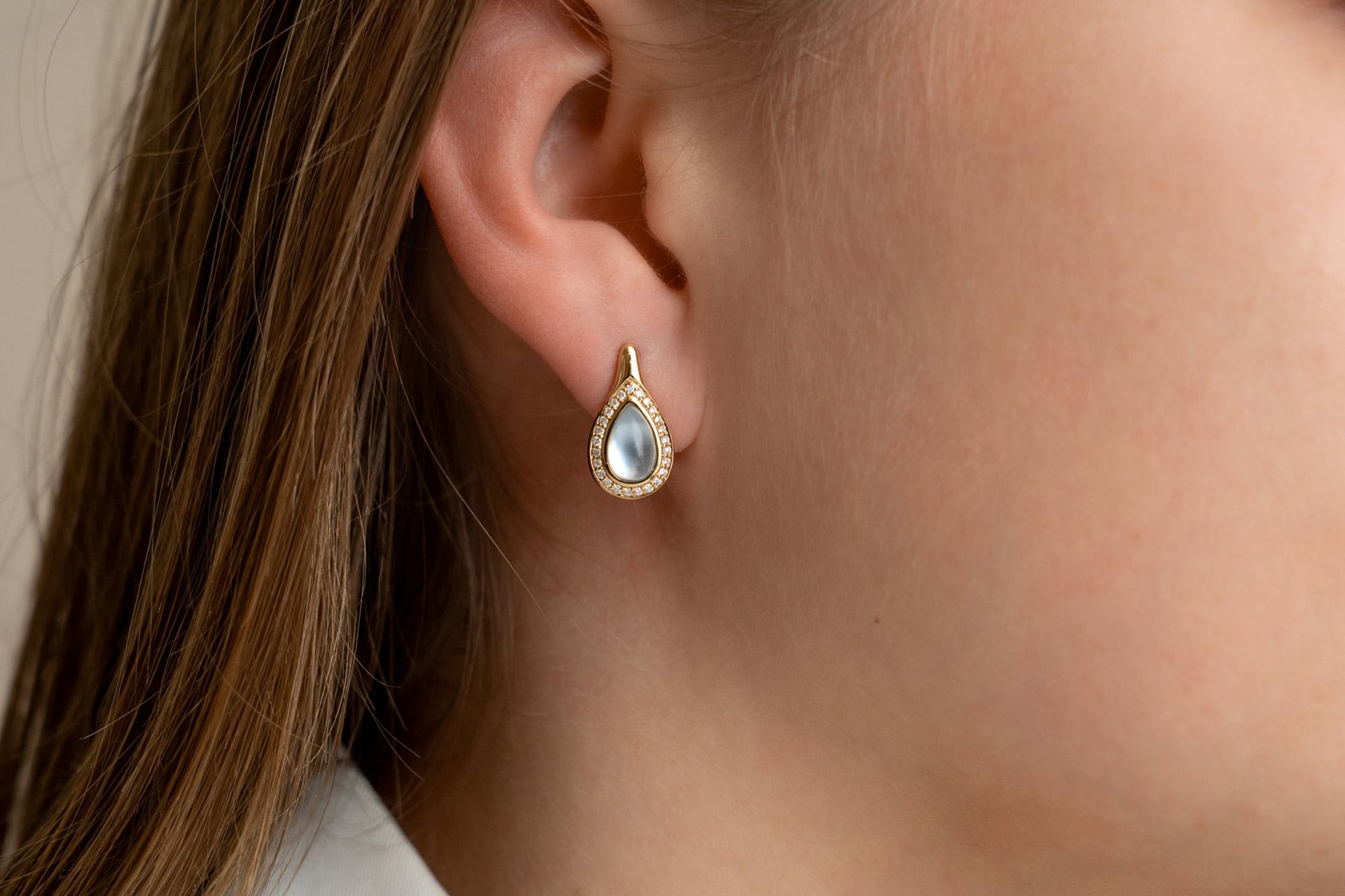 Oorringen in geel goud 18 kt met diamant, topaas en parelmoer