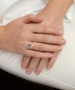 Ring in geel goud 18 kt met diamant en aquamarijn