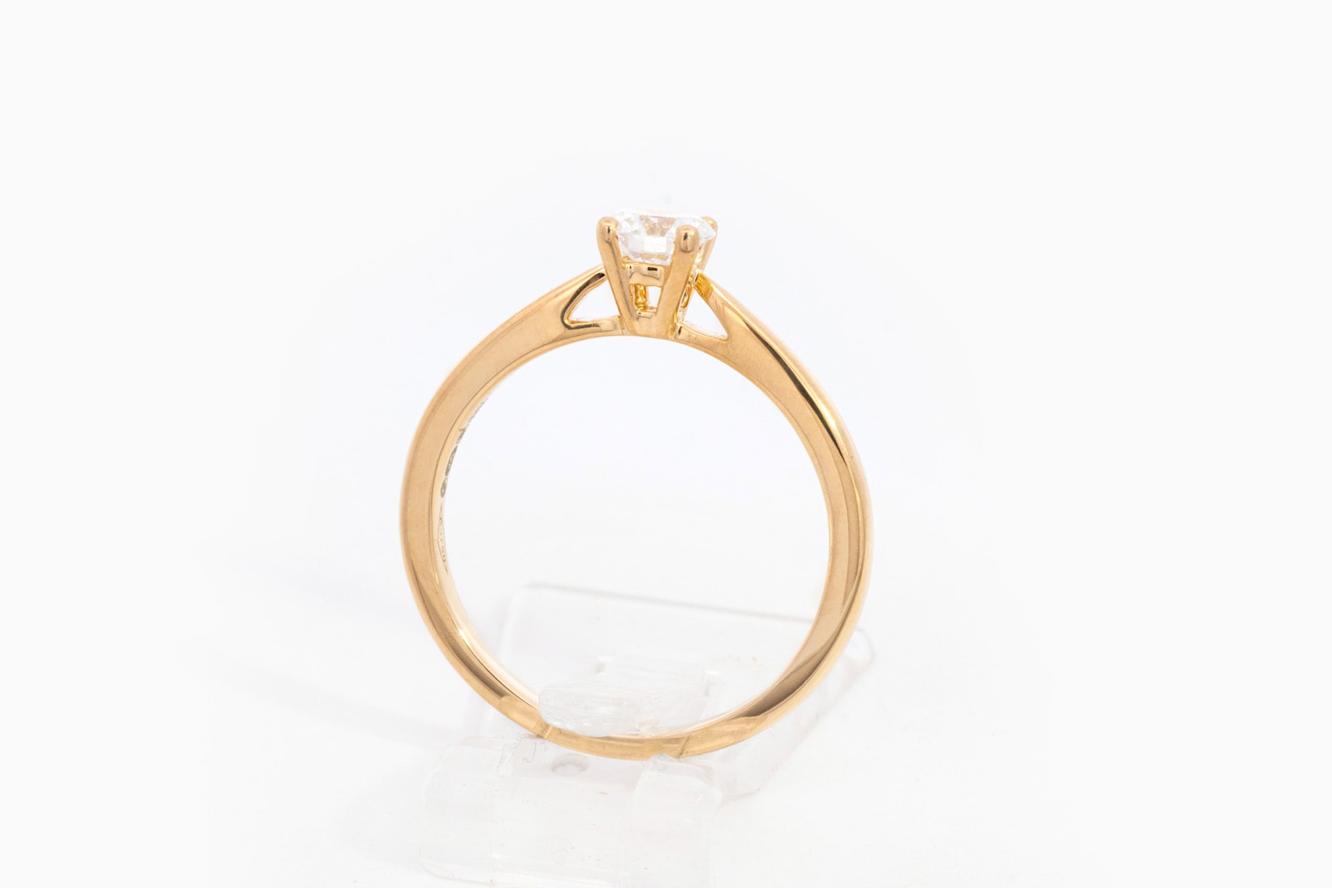 Bague en or jaune 18 carats sertie d’un diamant en taille brillant.